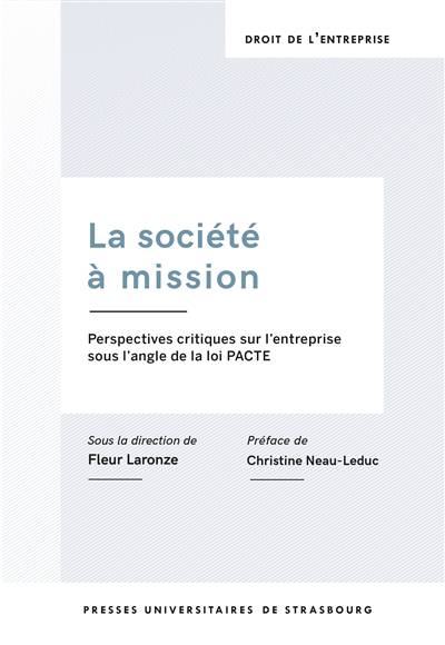 Le débat autour de la loi PACTE (Plan d'action pour la croissance et la transformation des entreprises) et la réforme des articles 1833 et 1835 du Code civil nourrissent les discussions scientifiques sur la société (en tant que forme juridique) et l'entreprise (en tant qu'organisation économique et sociale). La figure conceptuelle de l'entreprise n'a certes jamais cessé d'être redessinée : social business, Entreprise sociale et solidaire (ESS), certification B corp, etc. Mais la loi PACTE crée une nouvelle qualité attribuée à la société, celle de « société à mission » qui semble participer au rapprochement de la société et de l'entreprise, par la prise en compte des intérêts sociaux et environnementaux. Elle s'ajoute aux différents modèles proposés selon les secteurs d'activités et les droits des États.