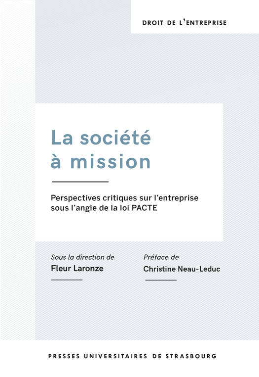 Le débat autour de la loi PACTE (Plan d'action pour la croissance et la transformation des entreprises) et la réforme des articles 1833 et 1835 du Code civil nourrissent les discussions scientifiques sur la société (en tant que forme juridique) et l'entreprise (en tant qu'organisation économique et sociale). La figure conceptuelle de l'entreprise n'a certes jamais cessé d'être redessinée : social business, Entreprise sociale et solidaire (ESS), certification B corp, etc. Mais la loi PACTE crée une nouvelle qualité attribuée à la société, celle de « société à mission » qui semble participer au rapprochement de la société et de l'entreprise, par la prise en compte des intérêts sociaux et environnementaux. Elle s'ajoute aux différents modèles proposés selon les secteurs d'activités et les droits des États.