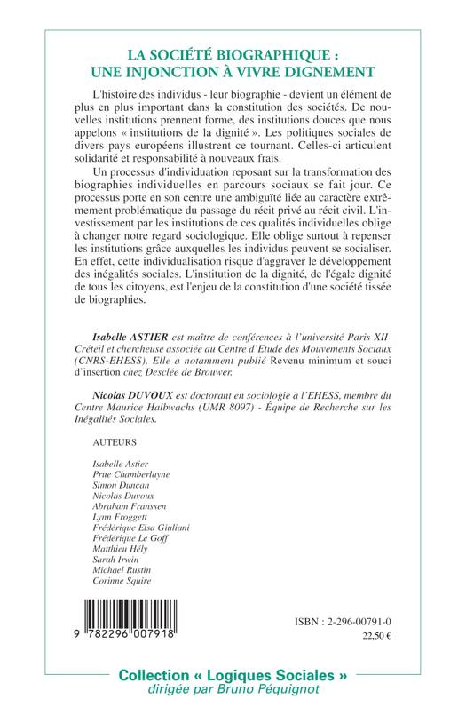 Hier les institutions prenaient en charge l'individu du berceau à la tombe sans qu'il ait son mot à dire. A l'inverse, ce dernier est aujourd'hui sommé d'être autonome et de se forger un récit biographique à l'adresse de ces mêmes institutions. Cette libération de l'individu peut aisément se retourner en contrainte et le condamner à une sorte de mise en récit perpétuelle. Ce livre étudie le tournant en cours dans les modes de socialisation dans les sociétés européennes et soumet au lecteur les enjeux de l'émergence d'une société où le lien social repose en grande partie sur une mise en récit de soi.