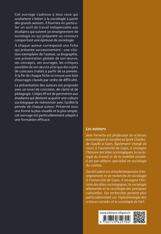 La présentation des auteurs est proposée avec un souci de concision, de clarté et de pédagogie. L'objectif est de permettre aux étudiants qui désirent acquérir une culture sociologique de mémoriser avec facilité la pensée de chaque auteur. Présenté sous une forme la plus visuelle et la plus simple, cet ouvrage est particulièrement adapté à une formation efficace.