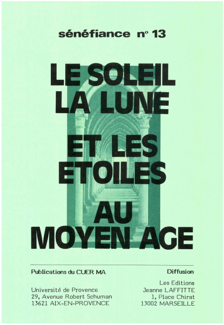 Soleil, Lune, Étoiles : leur présence, si l’on fait appel à ses souvenirs de lectures, n’est pas très fréquente dans les œuvres romanesques ou épiques du xiiième siècle. Mais si leurs apparitions sont rares, elles ont toujours, ou presque, une fonction que l’on peut qualifier dès maintenant de magique ou de mystique ; soleil, lune, étoiles remplissent alors le rôle de signes ; ils annoncent des situations, des conjonctures romanesques parfois conventionnelles, parfois plus originales : ils s’intègrent alors dans l’action ; ou ils font partie d’un climat amoureux, ils sont les attributs de scènes courtoises ; ou ils ouvrent un chemin mystique aux héros. Ils remplissent assez rarement un rôle utilitaire, plus rarement un rôle purement esthétique, suscitant la seule émotion artistique chez l’auditeur, ainsi que le public moderne y est habitué depuis les romantiques : « Pâle étoile du soir, messagère lointaine... » écrivait Musset.