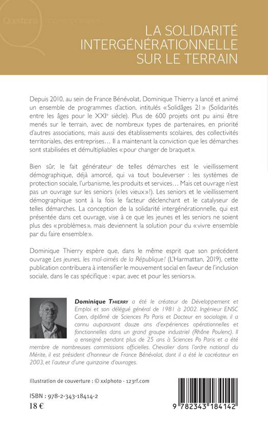 Depuis 2010, au sein de France Bénévolat, Dominique Thierry a lancé et animé un ensemble de programmes d'action, intitulés "Solidâges 21" (Solidarités entre les âges pour le XXIe siècle). Plus de 600 projets ont pu ainsi être menés sur le terrain, avec de nombreux types de partenaires, en priorité d'autres associations, mais aussi des établissements scolaires, des collectivités territoriales, des entreprises... Il a maintenant la conviction que les démarches sont stabilisées et démultipliables "pour changer de braquet" (...). Dominique Thierry espère que, dans le même esprit que son précèdent ouvrage Les jeunes, les-mal-aimés de la République ! (L'Harmattan, 2019), cette publication contribuera à intensifier le mouvement social en faveur de l'inclusion sociale dans le cas spécifique : "par, avec et pour les séniors".