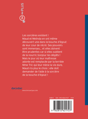 Les sorcières existent ! Véridique ! D'ailleurs, Maud et Melinda ont découvert qu'il y en a une qui vit dans leur école. Oui, dans leur cour de récréation même, bien cachée au fond d'une bouche d'égout. Elle n'est pas méchante et ne ferait jamais de mal à personne. Enfin, sauf si on oublie de la nourrir... Car si par malheur cela se produit alors bonjour les dégâts ! L'arrosage automatique se casse ou l'eau des robinets devient orange. Alors le jour où leur maitresse adorée se fracture l'épaule et est remplacée par l'horrible Mme Tric (qui leur fait disséquer des poissons, beurk !), Maud n'a plus le choix : elle doit demander de l'aide à la sorcière de la bouche d'égout!