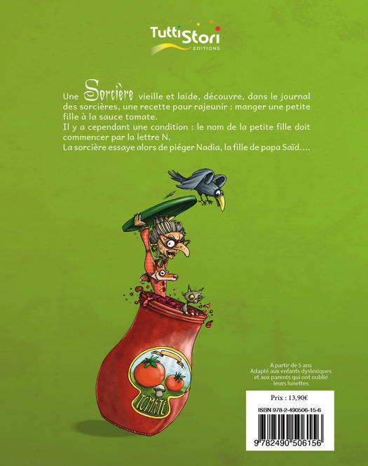 Une sorcière, vieille et laide, découvre, dans le journal des sorcières, une recette pour rajeunir : manger une petite fille avec de la sauce tomate. Il y a cependant une condition : le nom de la petite fille doit commencer par la lettre N. La sorcière essaye alors de piéger Nadia, la fille de papa Saïd, à plusieurs reprises sans succès. Elle finit par réussir à capturer la jeune fille en prenant la place de toutes les marchandes du marché de la rue Mouffetard. Bachir, le petit frère de Nadia, parviendra à la retrouver et demandera de l’aide pour la libérer