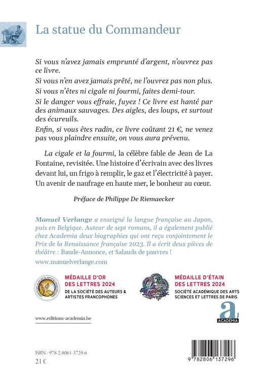 La cigale et la fourmi, la célèbre fable de Jean de La Fontaine, revisitée. Une histoire d'écrivain avec des livres devant lui, un frigo à remplir, le gaz et l'électricité à payer. Un avenir de naufrage en haute mer, le bonheur au coeur.