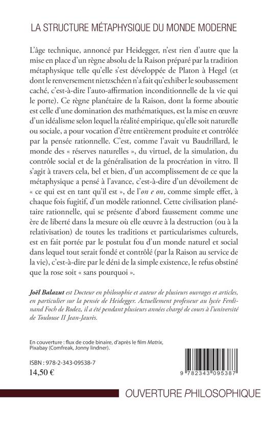 L'âge technique, annoncé par Heidegger, n'est rien d'autre que la mise en place d'un règne absolu de la Raison. Ce règne planétaire, dont la forme aboutie est celle d'une domination des mathématiques, est la mise en uvre d'un idéalisme selon lequel la réalité empirique, qu'elle soit naturelle ou sociale, a pour vocation d'être entièrement produite et contrôlée par la pensée rationnelle.