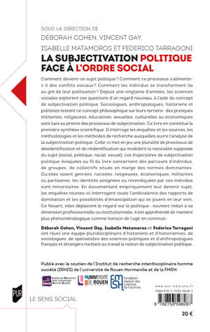 Comment devient-on sujet politique ? Comment ce processus s’alimente t-il des conflits sociaux ? Comment les individus se transforment-ils au gré de leur politisation ? Depuis une vingtaine d’années, les sciences sociales explorent ces questions d’un regard nouveau, à l’aide du concept de subjectivation politique. Sociologues, anthropologues, historiens et politistes testent ce concept philosophique sur leurs terrains : des pratiques militantes, religieuses, éducatives, sexuelles, culturelles ou économiques sont lues au prisme des processus de subjectivation. Ce livre en constitue la première synthèse scientifique. Il interroge les enquêtes et les sources, les méthodologies et les méthodes de recherche auxquelles ouvre l’analyse de la subjectivation politique. Celle-ci met en jeu une pluralité de processus de désidentification et de réidentification qui invalident la naturalité supposée du sujet (social, politique, racial, sexuel). Les trajectoires de subjectivation politique évoquées au fil du livre concernent des parcours d’individus, de groupes, de collectifs situés en marge des normes dominantes. Qu’elles soient genrées, racisées, religieuses, économiques, militantes ou partisanes, les identités assignées ou revendiquées par ces individus sont minoritaires. En documentant empiriquement leur devenir sujet, les enquêtes réunies ici interrogent toute l’ambivalence des rapports de domination et les possibilités d’émancipation qui se jouent en leur sein. Ce faisant, elles déplacent le regard sur le politique : souvent réduit à sa dimension professionnelle ou institutionnelle, il est appréhendé de manière plus phénoménologique comme horizon de l’agir en commun.