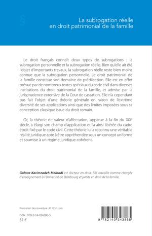 Le droit français connaît deux types de subrogations : la subrogation personnelle et la subrogation réelle. Bien qu’elle ait été l’objet d’importants travaux, la subrogation réelle reste bien moins connue que la subrogation personnelle. Le droit patrimonial de la famille constitue son domaine de prédilection. Elle est en effet prévue par de nombreux textes spéciaux du code civil dans diverses institutions du droit patrimonial de la famille, et admise par la jurisprudence extensive de la Cour de cassation. Elle n’a cependant pas fait l’objet d’une théorie générale en raison de l’extrême diversité de ses applications ainsi que des limites imposées sous sa conception classique issue du droit romain. Or, la théorie de valeur d’affectation, apparue à la fin du XIXe siècle, a élargi son champ d’application et l’a ainsi libérée du cadre étroit fixé par le code civil. Cette théorie lui a reconnu une véritable réalité juridique apte à être appréhendée sous un concept uniforme et soumise à un régime juridique cohérent.