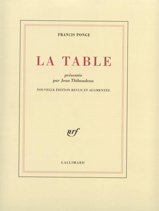 Ayant écrit (publié en 1964) Le Pré, Francis Ponge à ses yeux a achevé sa tâche. Il n'a plus qu'à répondre aux commandes, et continuer de révéler son oeuvre, - et noter d'autre part la partition de son chef-d'oeuvre ultime, La Table, ni "dossier", ni "fabrique", mais autre chose. La table : "je puis maintenant [...] l'effacer et du même coup effacer tout ce que j'ai écrit sur elle, l'effaçant enfin du même coup elle-même pour absolument en finir". Ou bien : "[...] je m'imagine mort au monde (pour le monde) et cependant ma mémoire [mon esprit] pour moi-même vivant encore et se souvenant, dans l'éternité"... ... Journal, en somme, le dernier, tenu du 21 novembre 1967 au 16 octobre 1973.