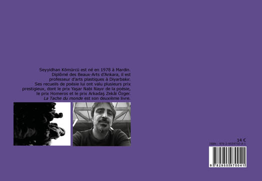 Seyyidhan Kömürcü est né en 1978 à Mardin. Diplômé des Beaux-Arts d'Ankara, il est professeur d'arts plastiques à Diyarbakir. Ses recueils de poésie lui ont valu plusieurs prix prestigieux, dont le prix Yasar Nabi Nayir de la poésie, le prix Homeros et le prix Arkadas Zekâi Özger. La Tache du monde est son deuxième livre.