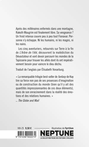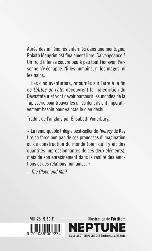 Après des millénaires enfermés dans une montagne, Rakoth Maugrim est finalement libre. Sa vengeance ? Un froid intense couvre peu à peu tout Fionavar. Personne n'y échappe. Ni les humains, ni les mages, ni les nains. Les cinq aventuriers, retournés sur Terre à la fin de L'Arbre de l'été, découvrent la malédiction du Dévastateur et vont devoir parcourir les mondes de la Tapisserie pour trouver les alliés dont ils ont impérativement besoin pour vaincre le dieu déchu.