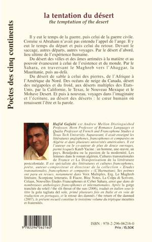 Il y eut le temps de la guerre, puis celui de la guerre civile. Comme si Abraham n'avait pas entendu l'appel de l'ange. Il y eut le temps du départ et puis celui du retour. Devant le saccage, autres départs, autres voyages. Par le désert d'abord, lieu ultime de l'expérience humaine. Du désert des villes et des âmes arrimées à la matière et au pouvoir évanescent à celui de l'existence et du monde. Par le Sahara, en traversant le Maghreb vers l'Ahaggar, la Mauritanie, puis au-delà.