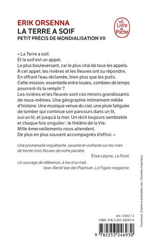 « La Terre a soif. Et la soif est un appel. Le plus bouleversant, car le plus vital de tous les appels. À cet appel, les rivières et les fleuves ont su répondre. En offrant l’eau réclamée, bien plus que les puits. Cette mission, essentielle entre toutes, combien de temps pourront-ils la remplir ? Les rivières et les fleuves sont ces miroirs grandissants de nous-mêmes. Une géographie intimement mêlée d’histoire. Une musique venue du ciel, une pluie fatiguée de tomber qui continue son parcours dans un lit, oui un lit, et jusqu’à la mer. Un récit toujours semblable et chaque fois singulier : le théâtre de la Vie. Mille émerveillements nous attendent. De plus en plus souvent accompagnés d’effroi. »