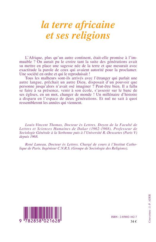 L'Afrique plus qu'un autre continent était elle promise à l'immuable ? On aurait pu le croire tant la suite des générations avait su mettre en place une sagesse né de la terre et que mesurait avec exactitude la parole de ceux qui avait autorité pour la proclamer. Une société en ordre qui le reproduisait. Tous les malheurs sont ils arrivés avec l'étranger qui parlait une autre langue, prêchait un autre dieu, disposait d'un pouvoir immense. Peut être bien. Un millénaire d'histoire a disparu en l'espace de deux générations.