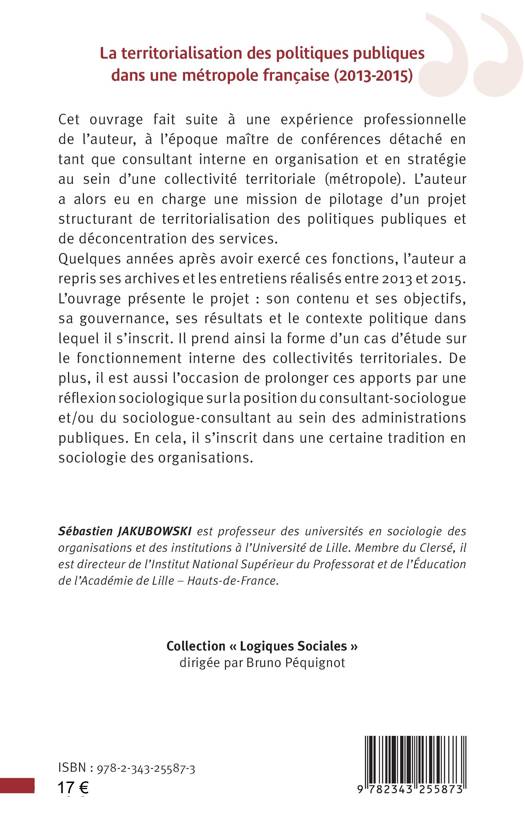 Cet ouvrage fait suite à une expérience professionnelle de l’auteur, à l’époque maître de conférences détaché en tant que consultant interne en organisation et en stratégie au sein d’une collectivité territoriale (métropole). L’auteur a alors eu en charge une mission de pilotage d’un projet structurant de territorialisation des politiques publiques et de déconcentration des services.