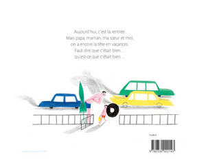 Toute la famille est de retour à la maison mais a encore la tête en vacances. C'était tellement bien... Le lendemain matin, le papa et son petit garçon sortent dans la rue en maillot de bain, le sourire aux lèvres, comme si de rien n'était. Indifférents à l'agitation de la ville, à la circulation, aux passants pressés... C'est pourtant jour de rentrée ! D'ailleurs, qui rencontrent-ils dans le parc, étendue près de l'étang ? La maîtresse... en maillot de bain, elle aussi ! Et ils ne sont pas les seuls à faire l'école buissonnière...