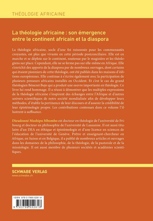 La theologie africaine, socle d'une foi raisonnee pour les communautes croyantes, est plus que vivante en cette periode postconciliaire. Elle est en marche et se deploie sur le continent, soutenue par le magistere et les theologiens sur place. Cependant, elle ne se ferme pas sur elle-meme en Afrique. Elle s'enrichit des apports de la diaspora par de nombreux ouvrages, dont certains qui etaient pionniers de cette theologie, ont ete publies dans les maisons d'editions europeennes. Elle continue a s'ecrire egalement avec la participation de plusieurs penseurs africains installes en Occident. Et c'est le cas du grand theologien Benezet Bujo qui a produit une oeuvre importante en theologie. Ce livre lui rend hommage. Il a reussi a demontrer que les multiples expressions de la theologie africaine s'inspirent des echanges entre l'Afrique et d'autres univers scientifiques de notre societe mondialisee afin de developper leurs methodes, d'etablir la pertinence de leur discours et d'asseoir la credibilite de leur epistemologie propre. Les contributions contenues dans ce volume l'illustrent a suffisance.>