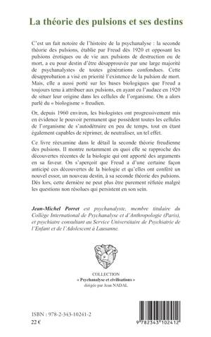 Ce livre réexamine dans le détail la seconde théorie freudienne des pulsions. Il montre notamment en quoi elle se rapproche des découvertes récentes de la biologie qui ont apporté des arguments en sa faveur. On s'aperçoit que Freud a d'une certaine façon anticipé ces découvertes de la biologie et qu'elles ont conféré un nouvel essor, un nouveau destin, à sa seconde théorie des pulsions. Dès lors, cette dernière ne peut plus être purement réfutée malgré les questions non résolues qui persistent en son sein.