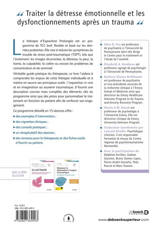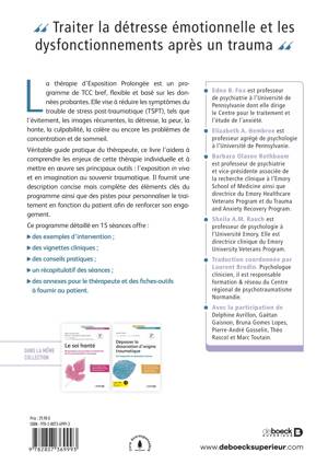 Véritable guide pratique du thérapeute, ce livre l’aidera à comprendre les enjeux de cette thérapie individuelle et à mettre en oeuvre ses principaux outils : l’exposition in vivo et en imagination au souvenir traumatique. Il fournit une description concise mais complète des éléments clés du programme ainsi que des pistes pour personnaliser le traitement en fonction du patient afin de renforcer son engagement.