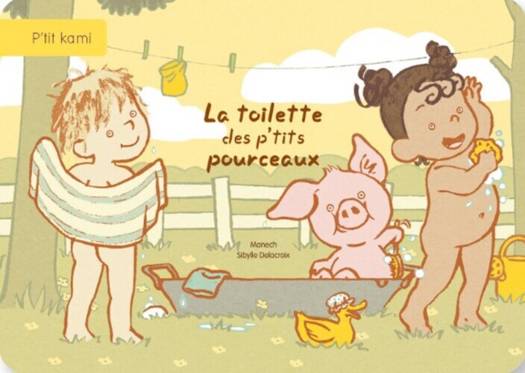 La toilette des p’tits pourceaux est une histoire adaptée aux tout-petits pour intégrer les gestes d’hygiène du quotidien et les parties du corps à travers les étapes de la toilette de deux enfants et d’un petit cochon. Après s’être roulés dans la boue, les trois petits cochons sont si sales qu’il est urgent de se laver. Chaque partie du corps fait l’objet d’une attention particulière. Mais une fois propres du menton à la queue en tire-bouchon, nos p’tits cochons résisteront-ils à l’appel de la gadoue?
