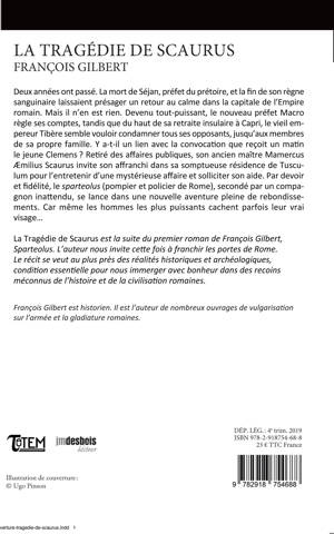 La Tragédie de Scaurus est la suite du premier roman de François Gilbert, Sparteolus. L’auteur nous invite cette fois à franchir les portes de Rome. Le récit se veut au plus près des récits historiques et archéologiques, condition essentielle pour nous immerger avec bonheur dans des recoins méconnus de l’histoire et de la civilisation romaines.