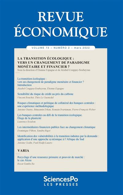 Ce numéro spécial témoigne d'une prise en compte encore très partielle des contraintes environnementales et climatiques dans les approches macroéconomiques et financières. Il donne à voir les évolutions institutionnelles indispensables pour répondre aux enjeux soulignés par les scientifiques du climat et de la biodiversité : entre innovations radicales et régulations des acteurs financiers historiques, le système monétaire et financier doit opérer un véritable changement de paradigme.