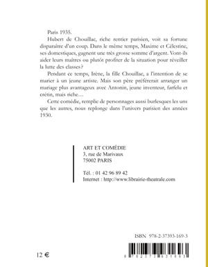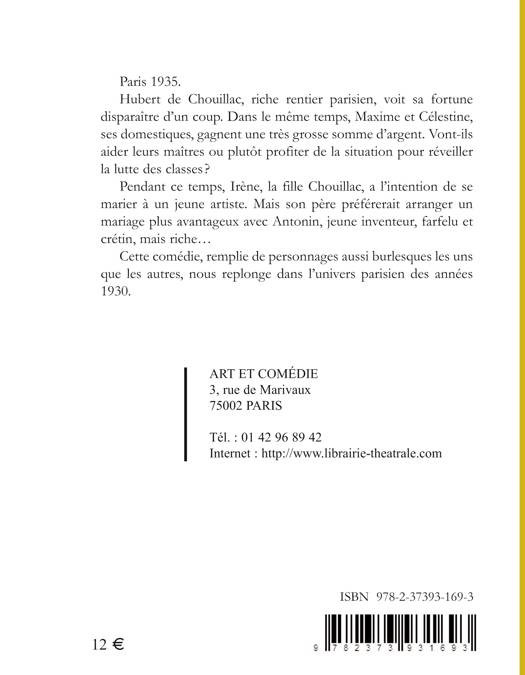 Paris 1935. Hubert de Chouillac, riche rentier parisien, voit sa fortune disparaître d'un coup. Dans le même temps, Maxime et Célestine, ses domestiques, gagnent une très grosse somme d'argent. Vont-ils aider leurs maîtres ou plutôt profiter de la situation pour réveiller la lutte des classes ? Pendant ce temps, Irène, la fille Chouillac, a l'intention de se marier à un jeune artiste. Mais son père préférerait arranger un mariage plus avantageux avec Antonin, jeune inventeur, farfelu et crétin, mais riche... Cette comédie, remplie de personnages aussi burlesques les uns que les autres, nous replonge dans l'univers parisien des années 1930.
