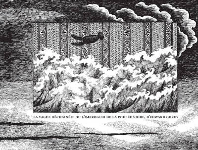 The Raging Tide, ou l'imbroglio de la poupée noire (1987) est un récit absolument suréaliste, absurde, goreyen. Trois personnages interlopes se retrouvent dans un monde peuplé de pouces plantés dans la terre : un chien hyper poilu (Skrump), une sorte de poupée de chiffons blancs sans visage (Naeelah) et un animal non identifié, entièrement noir et aux bras démesurés qui porte le nom de Figbash. A peine entrent-ils en interaction que les coups bas pleuvent entre eux. Pour ne rien arranger, un peu comme dans la mythique série Les Livres dont vous êtes le héros, Edward Gorey vous propose après chaque vignette de choisir vous-même la suite de la narration selon votre humeur....
