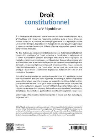 L’ouvrage se divise en deux grandes parties : l’architecture du régime autour des pouvoirs exécutif et législatif, puis la métamorphose du régime, conséquence de la mutation du Conseil constitutionnel et d’une altération de la logique des institutions que heurte de plein fouet l’intégration européenne.