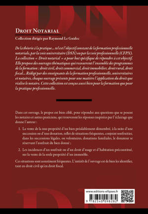 Cet ouvrage répond, de manière pratique, à toutes les questions et problématiques (origine du démembrement, informations des parties...) qui se posent au notaire, lorsque ce dernier est sollicité vis-à-vis d'une vente en nue-propriété d’un immeuble alors qu’un usufruit préexiste, ou si cet immeuble est grevé d’un droit d’usage et d’habitation, doit identifier les problématiques propres à ce type de contrat.