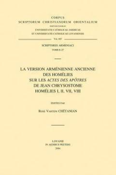 English summary: This critical edition and French translation of the eleventh-century Armenian translation of John Chrysostoms homily on the Acts of the Apostles offers an excellent opportunity for scholars to better understand the unpublished original Greek. An analysis of the Armenian translation also demonstrates the syntactical and lexical evolution of the language during the Middle Ages, as well as aspects of Middle Eastern Christianity. French description: L'etude de la version armenienne des Homelies sur les Actes des Apotres de Jean Chrysostome, contenue dans deux manuscrits, dont l'un reproduit une traduction integrale faite en 1077 a partir du grec, est essentielle pour connaitre l'original et, confirmant la nette superiorite de la recension dite brute, aidera a parfaire une edition critique restee inachevee. Le volume 1 donne le texte armenien de quatre homelies etabli a partir des deux manuscrits etudies, avec les textes de colophons. Le volume 2 propose la traduction francaise, comporte une comparaison avec le grec et un lexique bilingue. L'analyse des procedes de traduction du XIe siecle, compares a ceux de Ve epoque d'or de la traduction armenienne, permet de montrer l'evolution syntaxique et lexicale de l'armenien. Quant aux ecarts, dans cette version extremement litterale, ils attestent une specificite armenienne et serviront la connaissance du christianisme oriental.