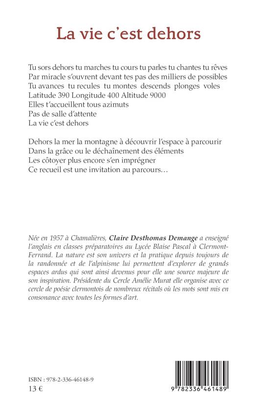 Dehors la mer la montagne à découvrir l’espace à parcourir Dans la grâce ou le déchaînement des éléments Les côtoyer plus encore s’en imprégner Ce recueil est une invitation au parcours…