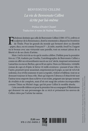Fabuleuse destinee que celle de Benvenuto Cellini (1500-1571), orfevre et sculpteur de la Renaissance, dont la renommee a depasse les frontieres de l'Italie. Pour les grands du monde qui forment alors sa clientele - papes, ducs, ou roi comme Francois Ier -, il cisele, martele, fond l'or, l'argent ou le bronze avec une virtuosite sans pareille, tout en restant jaloux de sa liberte et de ses choix d'artiste. Mais c'est le recit de sa vie qui le rendra celebre. Publiee pour la premiere fois en 1728, traduite par Goethe, l'autobiographie de Benvenuto Cellini a connu en effet un extraordinaire succes au XIXe siecle, inspirant notamment Lamartine ou encore Berlioz, qui en fit un opera. Dans ces Memoires, veritable roman de cape et d'epee, le heros vit mille aventures: passant d'une ville a l'autre, poursuivi pour assassinat, emprisonne par le pape, accuse de vol et de sodomie, il se revele jouisseur et sans scrupules, violent et hableur, tout en se donnant toujours le beau role. Mais qu'importe l'absence d'objectivite tant l'auteur nous emporte dans sa fievre et ses eclats, peignant une epoque nourrie de rivalites et de complots, mais d'ou ont surgi des artistes incomparables comme Titien ou Michel-Ange, qui fut pour Cellini le modele absolu. Cette nouvelle edition est pour la premiere fois accompagnee d'illustrations qui donnent vie aux personnages de ce recit et presentent les oeuvres de Cellini citees par l'artiste lui-meme.