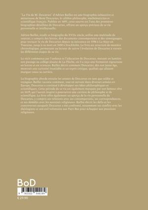 "La Vie de M. Descartes" d'Adrien Baillet est une biographie exhaustive et minutieuse de René Descartes, le célèbre philosophe, mathématicien et scientifique français. Publiée en 1691, cette oeuvre est l'une des premières biographies détaillées de Descartes, offrant un aperçu précieux de sa vie personnelle et intellectuelle. Adrien Baillet, érudit et biographe du XVIIe siècle, utilise une multitude de sources, y compris des lettres, des documents contemporains et des témoignages, pour retracer la vie de Descartes depuis sa naissance en 1596 à La Haye en Touraine, jusqu'à sa mort en 1650 à Stockholm. Le livre est structuré de manière chronologique, permettant au lecteur de suivre l'évolution de Descartes à travers les différentes étapes de sa vie. Le récit commence par l'enfance et l'éducation de Descartes, mettant en lumière son passage au collège jésuite de La Flèche, où il a reçu une formation rigoureuse en lettres et en sciences. Baillet décrit comment Descartes, dès son jeune âge, montrait une curiosité insatiable et un esprit critique, qualités qui allaient marquer toute sa carrière. La biographie aborde ensuite les années de Descartes en tant que soldat et voyageur. Baillet raconte comment, tout en servant dans diverses armées en Europe, Descartes a continué à développer ses idées philosophiques et scientifiques. Cette période de sa vie est également marquée par son fameux rêve en 1619, qui l'aurait inspiré à poursuivre une carrière de philosophe et de scientifique. Baillet consacre une grande partie de son ouvrage à l'analyse des oeuvres majeures de Descartes, notamment "Le Discours de la méthode", "Les Méditations métaphysiques" et "Les Principes de la philosophie". Il explique les circonstances de leur rédaction, leur réception par le public et leur impact sur la pensée scientifique et philosophique de l'époque. Baillet ne se contente pas de résumer ces oeuvres, mais il en explore également les idées principales et la manière dont elles ont révolutionné