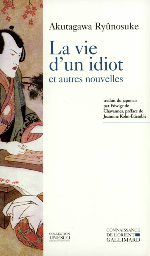 "Après le choix de nouvelles qu'en 1965 nous donna Mori Arimasa : Rashômon et autres contes, voici des textes moins connus peut-être mais tout aussi saisissants : textes de jeunesse où perce cruellement l'influence occidentale dans laquelle se débattirent malaisément les écrivains du Meiji. Influence qui vient se perdre et se retrouver dans les hésitations morbides de La vie d'un idiot, journal autobiographique, dont Akutagawa confia au plus proche de ses amis le soin de décider s'ils étaient publiables ou non, ces fragments déchirants d'un homme déchiré. Voici donc la première traduction française de ces pages terribles où l'on voit se décomposer une personnalité d'exception qui s'évertue à choisir l'aube qui sera celle de son suicide. Combien admirable déjà se montrait Akutagawa dans Les mandarines, brève nouvelle de jeunesse ! Il le demeura toujours ; ici en tout particulier dans la surprenante, suffocante réinterprétation du vieux thème des Quarante-sept ronins : Un jour, Ôishi Kuranosuke, dont la force, la perfection défient les plus achevées de ses nouvelles, sans même en excepter Dans le fourré, qui inspira Kurosawa. Le Japon des samouraïs et du bushidô ne cessait de mourir. Assuré de s'en féliciter Akutagawa ne savait hélas plus quelle grandeur lui substituer. Angoissante hésitation, drame pour lui insupportable, qu'il n'éluda qu'en se tuant." Jeannine Kohn-Etiemble.