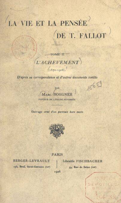 La vie et la pensée de T. Fallot (2). L'achèvement (1872-1904) EBOOK