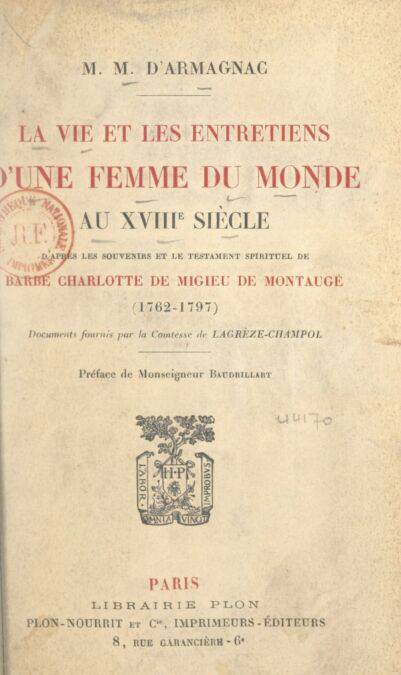 D'après les souvenirs et le testament spirituel de Barbe Charlotte de Migieu de Montaugé (1762-1797)