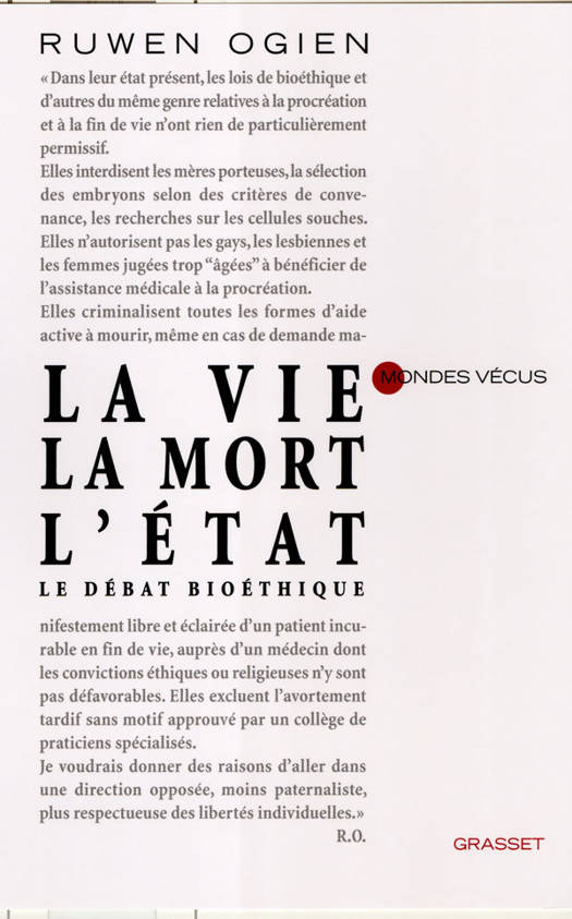 Dans leur état présent, les lois de bioéthique et d'autres du même genre relatives ^ la procréation et ^ la fin de vie, n'ont rien de particulièrement permissif. Elles interdisent les mères porteuses, la sélection des embryons selon des critères de convenance, les recherches sur les cellules souches. Elles n'autorisent pas les gays, les lesbiennes et les femmes jugées trop "âgées" à bénéficier de l'assistance médicale à la procréation. Elles criminalisent toutes les formes d'aide active à mourir, même en cas de demande manifestement libre et éclairée d'un patient incurable en fin de vie, auprès d'un médecin dont les convictions éthiques ou religieuses n'y sont pas défavorables. Elles excluent l'avortement tardif sans motif approuvé par un collège de praticiens spécialisés. Je voudrais donner des raisons d'aller dans une direction opposée, moins paternaliste, plus respectueuse des libertés individuelles. R.O.
