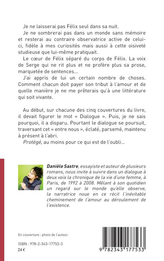 Je ne laisserai pas Félix seul dans sa nuit. Je ne sombrerai pas dans un monde sans mémoire et resterai au contraire observatrice active de celui-ci, fidèle à mes curiosités mais aussi à cette oisiveté studieuse que lui-même pratiquait. Le coeur de Félix séparé du corps de Félix. La voix de Serge qui ne rit plus et ne profère plus sa prose, marquetée de sentences... J'ai appris de lui un certain nombre de choses. Comment chacun doit payer son tribut à l'amour et de quelle manière je ne me prêterais qu'à une littérature qui soit vivante.