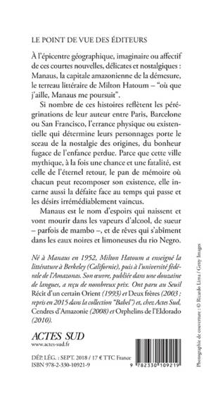 À l'épicentre géographique, imaginaire ou affectif de ces courtes nouvelles, délicates et nostalgiques : Manaus, la capitale amazonienne de la démesure, le terreau littéraire de Milton Hatoum - "où que j'aille, Manaus me poursuit".