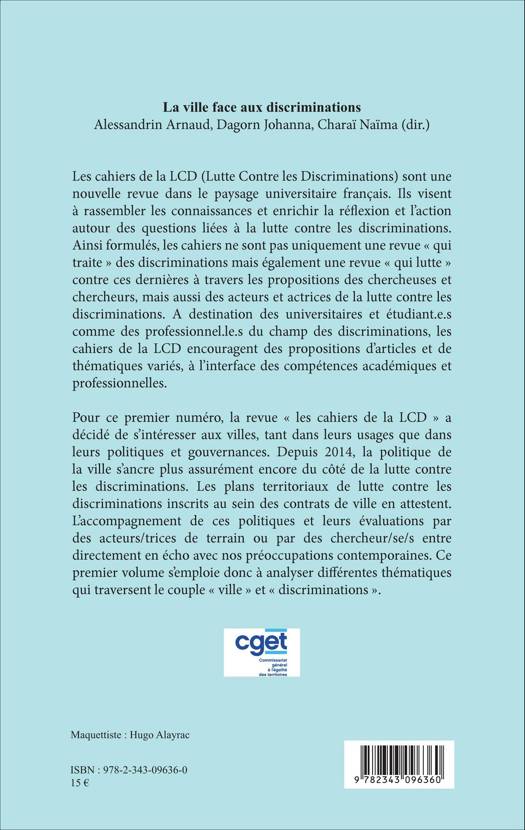 Ces cahiers visent à rassembler les connaissances et enrichir la réflexion et l'action autour des questions liées à la lutte contre les discriminations, à l'interface des compétences académiques et professionnelles. Ce premier numéro s'emploie à analyser différentes thématiques qui traversent le couple "ville" et "discriminations".