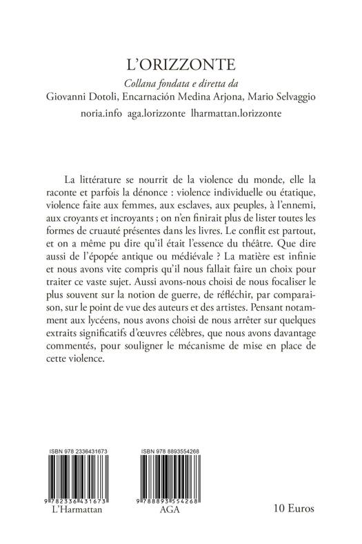 La littérature se nourrit de la violence du monde, elle la raconte et parfois la dénonce : violence individuelle ou étatique, violence faite aux femmes, aux esclaves, aux peuples, à l’ennemi, aux croyants et incroyants ; on n’en finirait plus de lister toutes les formes de cruauté présentes dans les livres. Le conflit est partout, et on a même pu dire qu’il était l’essence du théâtre. Que dire aussi de l’épopée antique ou médiévale ? La matière est infinie et nous avons vite compris qu’il nous fallait faire un choix pour traiter ce vaste sujet. Aussi avons-nous choisi de nous focaliser le plus souvent sur la notion de guerre, de réfléchir, par comparaison, sur le point de vue des auteurs et des artistes. Pensant notamment aux lycéens, nous avons choisi de nous arrêter sur quelques extraits significatifs d’œuvres célèbres, que nous avons davantage commentés, pour souligner le mécanisme de mise en place de cette violence.