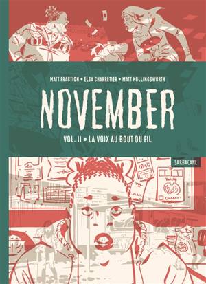 Dee la junkie éclopée, Kay la flic déchue rongée par la culpabilité, et Emma-Rose la belle survoltée tombée au mauvais endroit au mauvais moment, se retrouvent dans ce dernier acte prises en étau par une conspiration invisible orchestrée par des flics pourris et des gangsters de la pire espèce. À mesure que la nuit avance, le piège se referme sur elles... Dans cette histoire co-créée par l'auteur Matt Fraction (Sex, Criminals, Casanova, - des best-sellers du New York Times) et l'illustratrice Elsa Charretier (Star Wars, Infinite Loop), mise en couleur par Matt Hollingsworth, November suit trois femmes dont les trajectoires vont se croiser dans un underground noir et criminel. Alors que le feu et la fureur se déchaînent dans leur ville pendant un jour et une nuit, elles découvrent que leurs destins sont liés par un homme mystérieux qui semble tirer les ficelles. Une nuit. Une ville. Trois femmes. November.