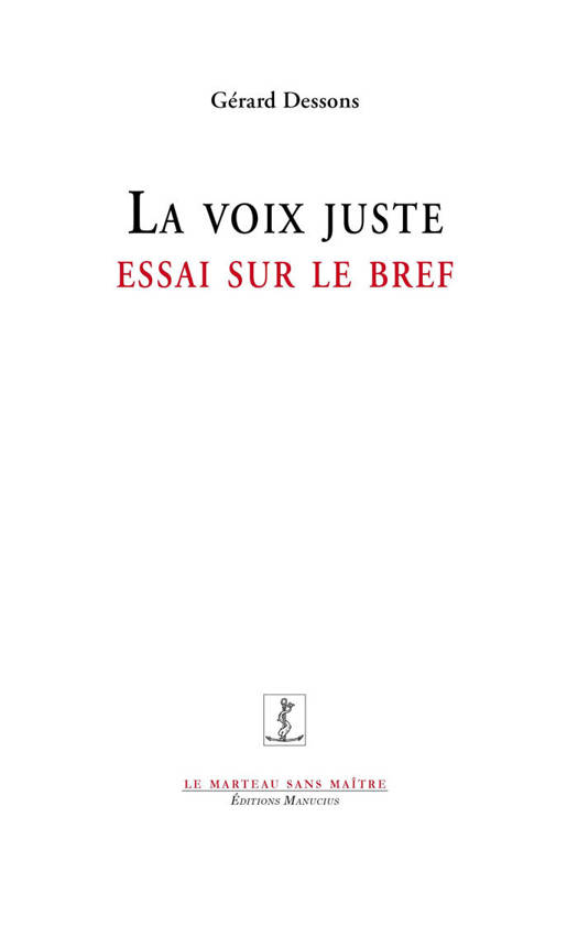 À partir d'une réflexion générale - historique et critique -, le présent essai propose de penser la brièveté en dehors des dualismes, qu'ils soient formels (le court opposé au long) ou rhétoriques (le concis opposé à l'ample). Le point de vue d'une poétique des discours permet de concevoir différemment l'idée de bref : par la notion de justesse, qui appartient en propre, dès l'Antiquité, à la question de la brièveté.