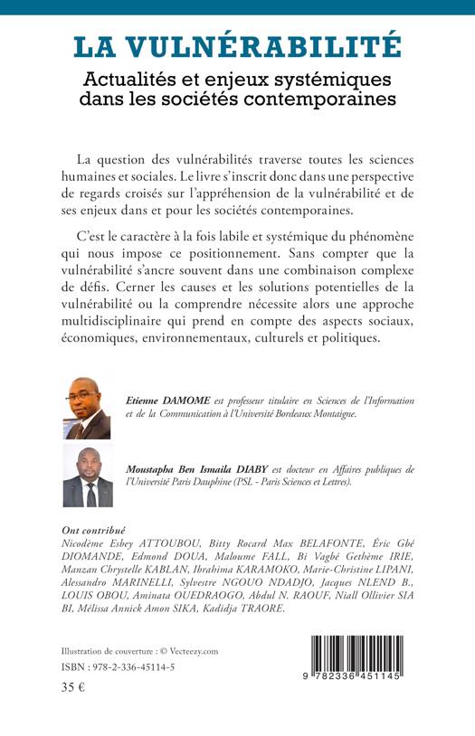 La question des vulnérabilités traverse toutes les sciences humaines et sociales. Le livre s’inscrit donc dans une perspective de regards croisés sur l’appréhension de la vulnérabilité et de ses enjeux dans et pour les sociétés contemporaines.