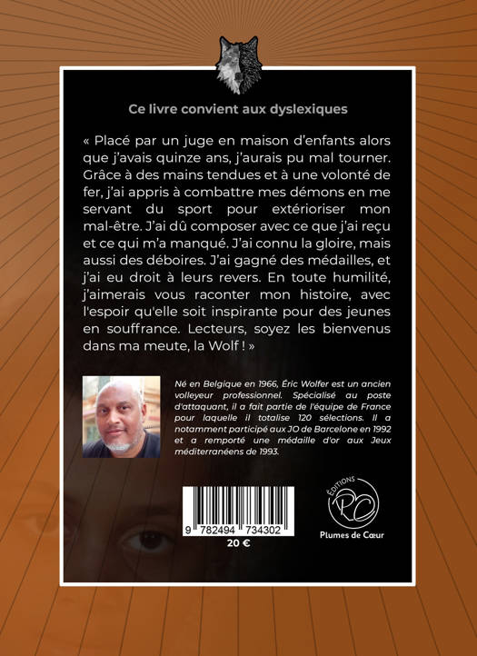« Placé par un juge en maison d'enfants alors que j'avais quinze ans, j'aurais pu mal tourner. Grâce à des mains tendues et à une volonté de fer, j'ai appris à combattre mes démons en me servant du sport pour extérioriser mon mal-être. J'ai dû composer avec ce que j'ai reçu et ce qui m'a manqué. J'ai connu la gloire, mais aussi des déboires. J'ai gagné des médailles, et j'ai eu droit à leur revers. En toute humilité, j'aimerais vous raconter mon histoire, avec l'espoir qu'elle soit inspirante pour des jeunes en souffrance. Lecteurs, soyez les bienvenus dans ma meute, la Wolf ! »