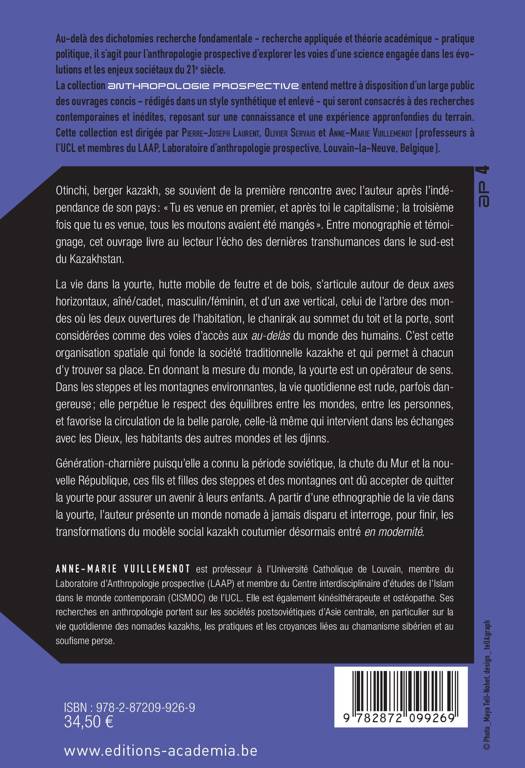 Entre monographie et témoignage, cet ouvrage livre au lecteur l'écho des dernières transhumances dans le Sud-Est du Kazakhstan. À partir d'une ethnographie de la vie dans la yourte, hutte mobile de feutre et de bois, l'auteur présente un monde nomade à jamais disparu et interroge, pour finir, les transformations du modèle social kazakh coutumier désormais entré « en modernité ».