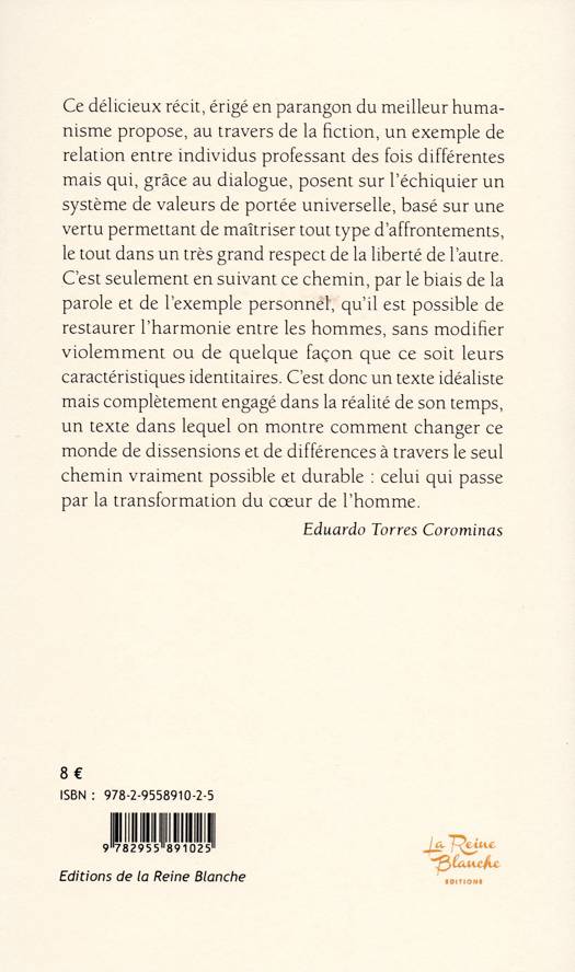 Cette nouvelle espagnole de 1565 illustre un exemple de relations entre des individus professant une foi différente mais qui, grâce au dialogue, posent sur l'échiquier un système de valeurs de portée universelle, fondé sur une vertu permettant de maîtriser tout type d'affrontements, le tout dans le respect de la liberté de l'autre.