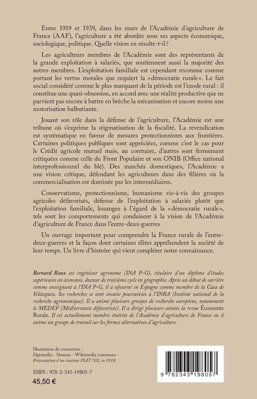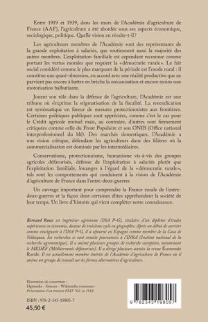 Entre 1919 et 1939, l’agriculture a été étudiée par l’Académie d’agriculture de France (AAF). Quelle vision en résulte-t-il ? Les agriculteurs membres de l’Académie représentent la grande exploitation à salariés. L’exploitation familiale est cependant reconnue comme portant les vertus morales que requiert la "démocratie rurale". Le fait social considéré comme le plus marquant de la période est l’exode rural lié à la mécanisation. Jouant son rôle dans la défense de l’agriculture, l’Académie est une tribune où s’exprime la stigmatisation de la fiscalité. La revendication est systématique en faveur de mesures protectionnistes aux frontières. Conservatisme, protectionnisme, humanisme vis-à-vis des groupes agricoles défavorisés, défense de l’exploitation à salariés plutôt que l’exploitation familiale, louanges à l’égard de la "démocratie rurale", telles sont les valeurs de l’Académie d’agriculture de France durant l’entre-deux-guerres.
