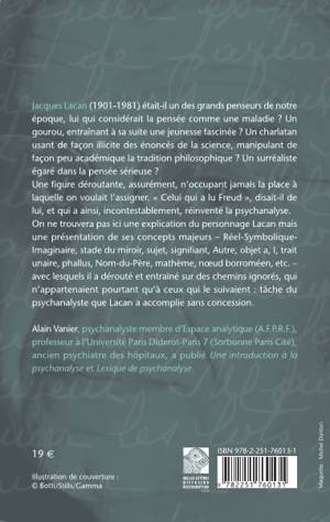 Jacques Lacan (1901-1981) était-il un des grands penseurs de notre époque, lui qui considérait la pensée comme une maladie ? Un gourou, entraînant à sa suite une jeunesse fascinée ? Un charlatan usant de façon illicite des énoncés de la science, manipulant de façon peu académique la tradition philosophique ? Un surréaliste égaré dans la pensée sérieuse ? Une figure déroutante, assurément, n'occupant jamais la place à laquelle on voulait l’assigner. "Celui qui a lu Freud", disait-il de lui, et qui a ainsi, incontestablement, réinventé la psychanalyse. On ne trouvera pas ici une explication du personnage Lacan mais une présentation de ses concepts majeurs – Réel-Symbolique-Imaginaire, stade du miroir, sujet, signifiant, Autre, objet a, trait unaire, phallus, Nom-du-Père, mathème, nœud borroméen, etc. – avec lesquels il a dérouté et entraîné sur des chemins ignorés – qui n’appartenaient pourtant qu’à ceux qui le suivaient : tâche du psychanalyste que Lacan a incarné sans concession.